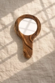 Орнамент навколо оправи нагадує виноградну лозу — символ життя, достатку і безперервності.Тепла фактура дерева і плавні лінії роблять це дзеркальце не просто аксесуаром, а особливою річчю, яку приємно тримати в руках і користуватися щодня.